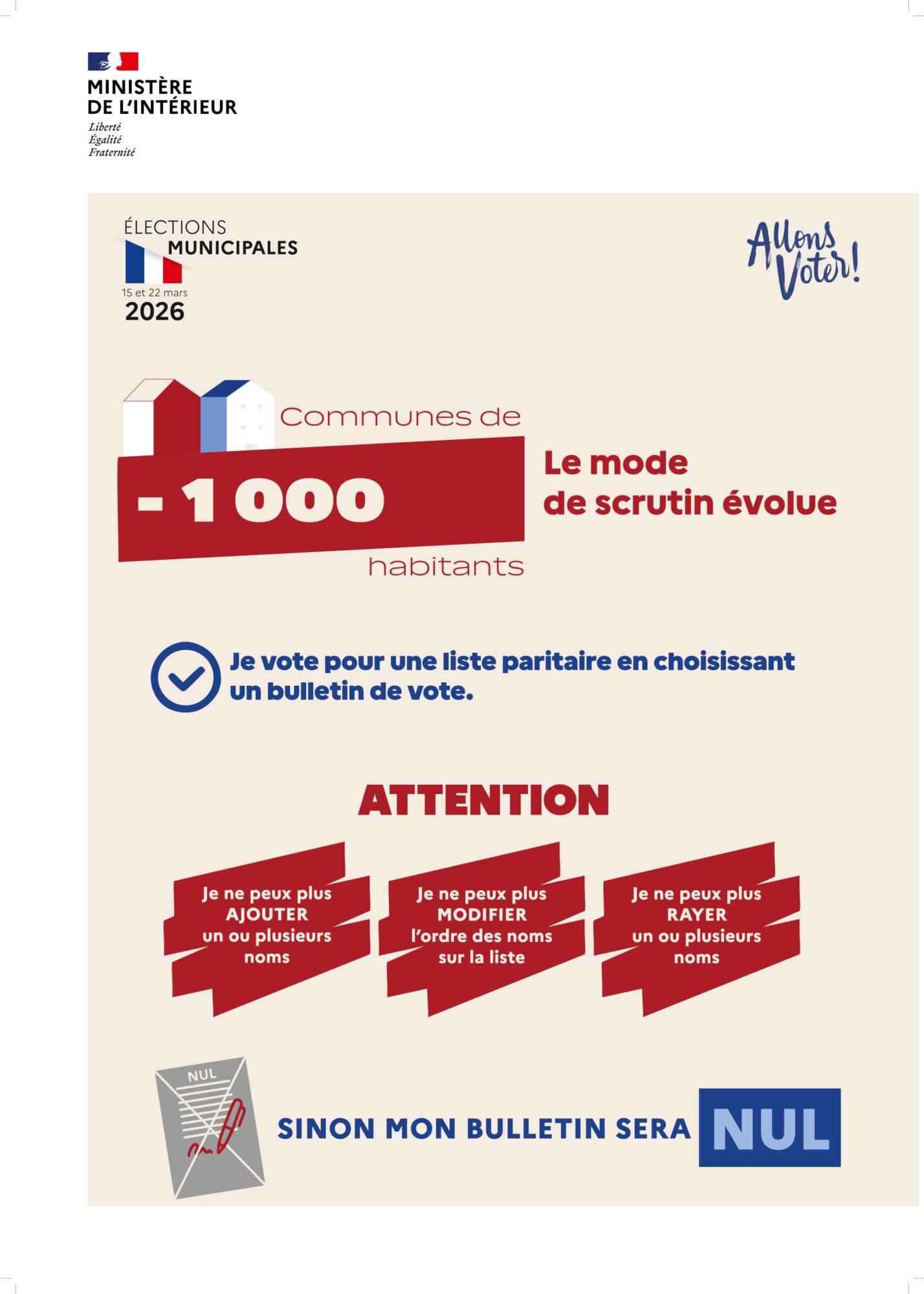 Fin du panachage : il est désormais interdit de modifier un bulletin (impossible de rayer, ajouter des noms ou de modifier l’ordre des candidats), sous peine de nullité de celui-ci