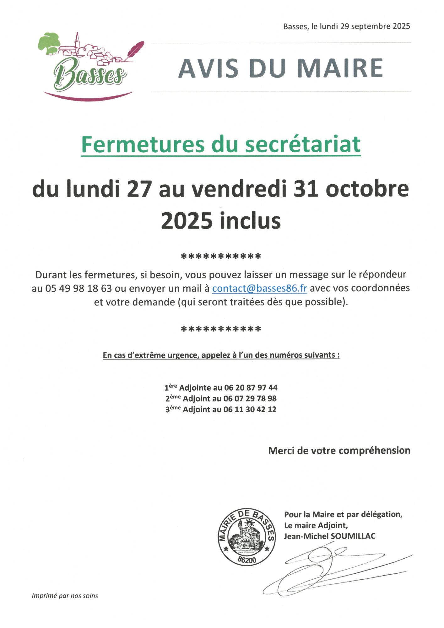 3. Fermeture du secrétariat de la mairie