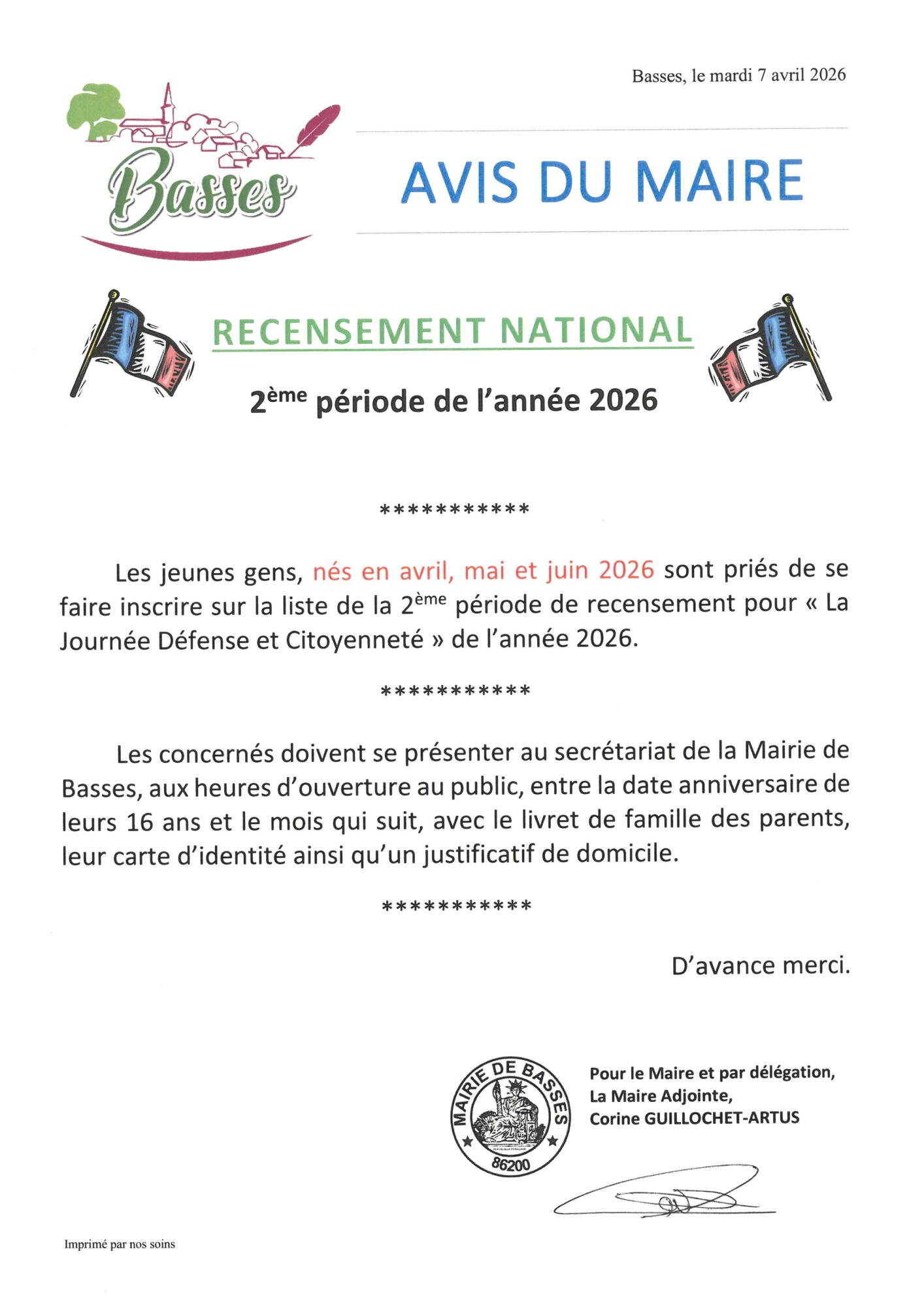 Recensement National à 16 ans (2ème trimestre 2026)